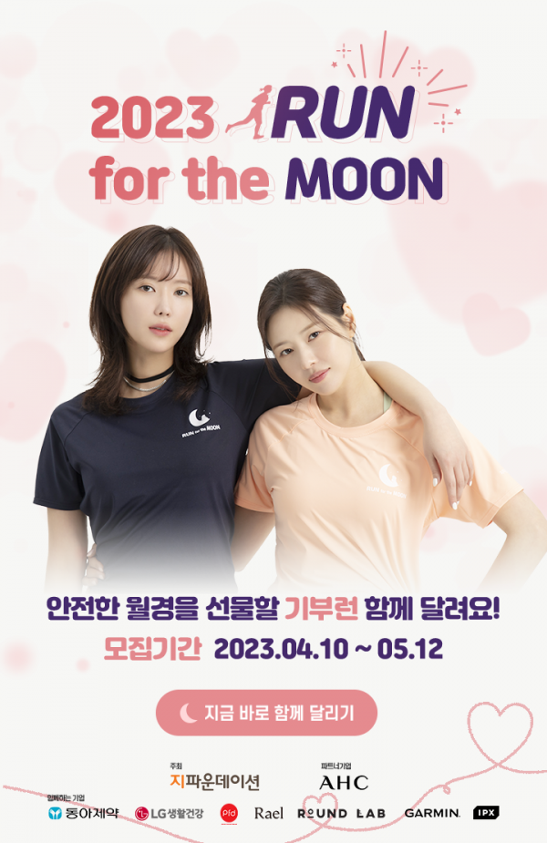 캠페인을 통해 모금된 기부금은 취약계층 여성에게 생리대 키트 지원과 위생시설 개보수 등 지파운데이션 보건위생사업에 쓰일 계획이다. 이번 4회 런포더문은 AHC가 파트너 기업으로 동아제약, LG생활건강, PFD, 라엘, 라운드랩, 가민, IPX가 함께하는 기업으로 참여한다.