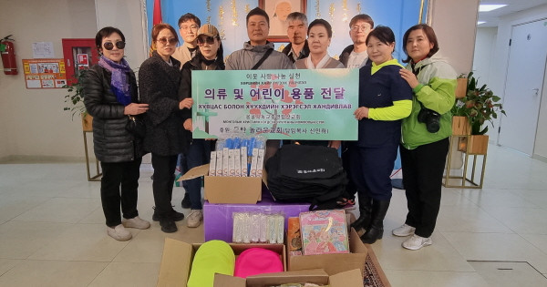 몽골 복음화를 위한 몽골기독교총연합선교회(법인회장 김동근 장로)의 선교사역에 동참하여 현지 선교지 탐방 중인 동탄 놀라운교회 신인하 담임목사와 성도들은 몽기총을 통한 몽골 방문 중 빠듯한 일정 가운데 영혼사랑의 마음으로 이웃을 돌아보며 예수사랑 이웃섬김의 실천으로 몽기총과 함께 울란바트르시 바양주르흐구 아동보호센터(원장 잉흐체첵)를 방문하여 가방,모자, 문구류, 간식 등 어린이 용품을 전달했다.