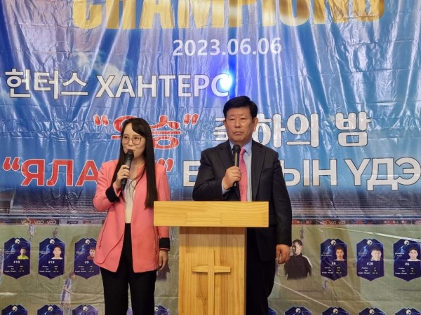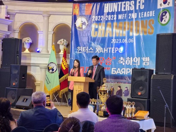 김동근 장로는 “어젯밤 시즌 마지막 경기를 통쾌한 우승으로 마무리 하고 MFF 2부리그 챔피언으로 멋진 시상을 마쳤다. 헌터스 우승 축하의 밤으로 이 자리에 모인 선수들과 코치, 매니저, 이사진과 가족분들, 몽골 교계 내빈 여러분 환영하고 감사드린다”고 말했다.
