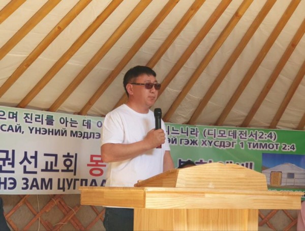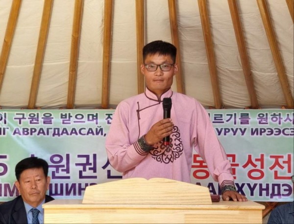 볼강 아이막 호딱 운드르솜 제 5수원권선제일교회(쉰잠교회) 서드벨렉 전도사는 “복음을 전할 수 있고, 모일 수 있는 장소가 생겨서 감사하다. 이 지역에 파송되어 온 가족이 함께 왔는데 멀리까지 와서 게르성전을 건축해 주신 은혜와 수고에 진심으로 감사드리며 주신 힘으로 열심히 사역하겠다”고 인사했다.
