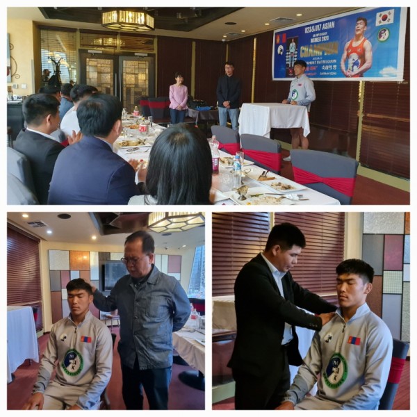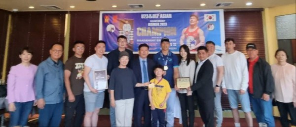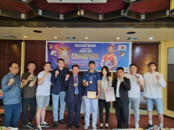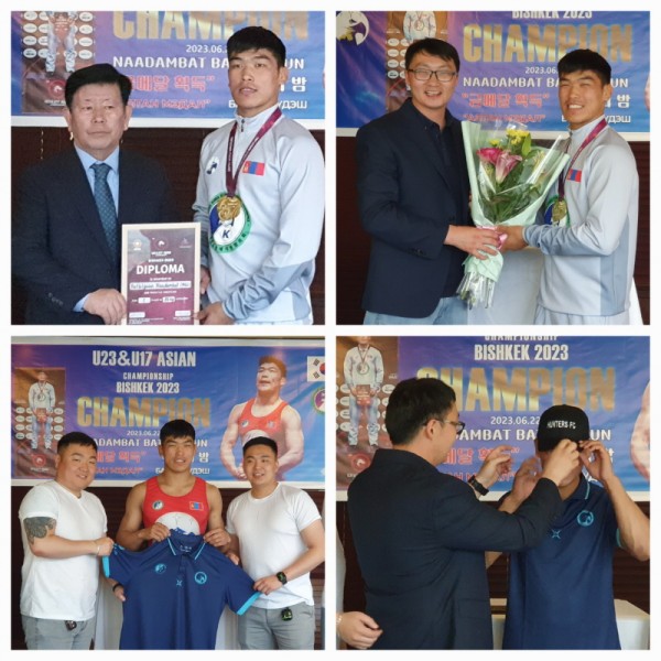 몽골한국경제지원협의회(회장 김동근 장로)는 레슬링 바트빌궁선수에게 축하패를 전달하고 특별 상여금과 꽃다발을 전달했다.