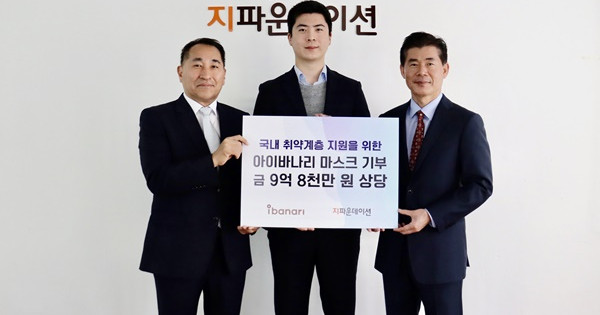지파운데이션(대표 박충관)은 에스비글로벌헬스케어(회장 이상봉/대표 이승현)의 프리미엄 마스크 브랜드인 ‘아이바나리’가 경제적 어려움을 겪고 있는 취약계층을 위해 마스크 100만 장을 기부했다고 26일 밝혔다.
