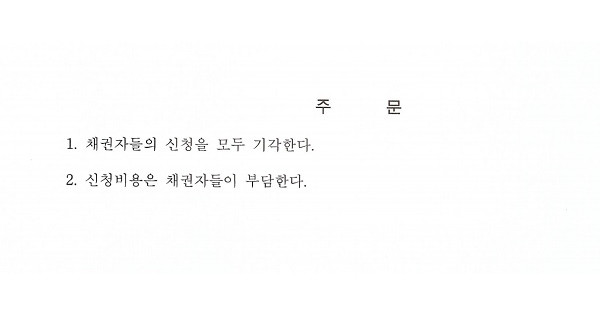 수원지방법원 안양지원 제11민사부는 7월 15일 “채 권자들의 신청을 모두 기각한다”고 밝히고 신청비용을 채권자들이 부담하도록 주문 했다.