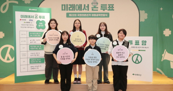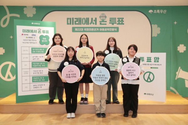 아동복지전문기관 초록우산(회장 황영기)이 11일 미래에서 온 투표 캠페인의 일환으로 ‘제22대 국회의원선거 아동공약전달식’을 개최해 국민의힘, 더불어민주당, 녹색정의당에 아동공약을 전달했다고 12일 밝혔다.