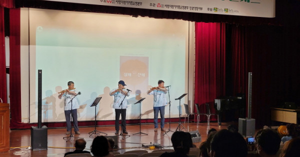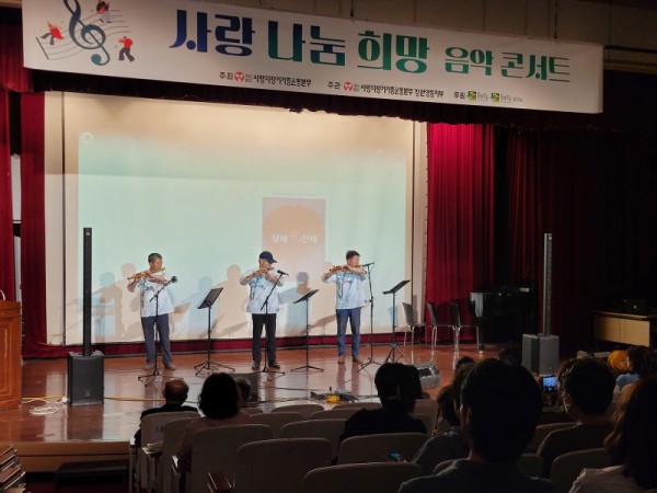 대금 연주팀 ‘다올뎌’의 찬조 공연으로 막이 오른 ‘사랑 나눔 희망 음악콘서트’는 최익현 오카리나 연주자의 「물놀이」와 박재우 통기타 연주자의 「꽃은 다시 피고」, 「추억 속으로」 등의 자작곡을 오카리나와 기타의 합동 연주로 펼치며 관객들에게 감동을 선사했다.