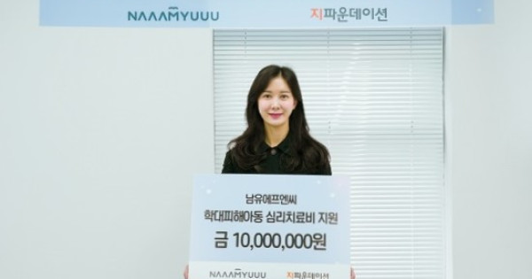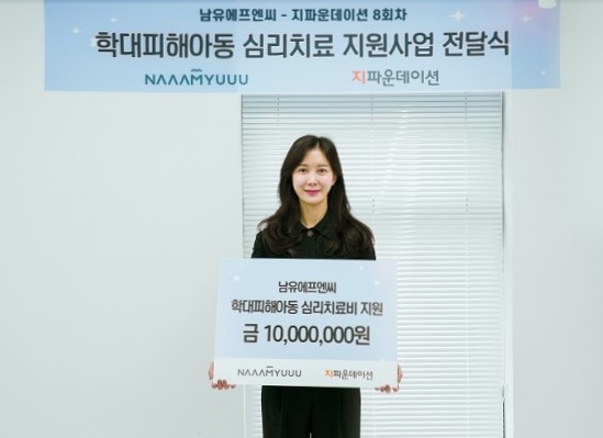 국제개발협력NGO 지파운데이션(대표 박충관)은 ㈜남유에프엔씨(대표 남유숙)가 학대피해아동 심리치료비 지원사업에 1,000만 원을 기부했다고 30일 밝혔다.