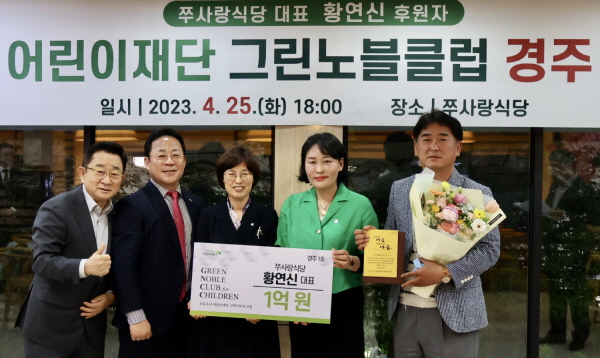 아동옹호대표기관 초록우산어린이재단(회장 황영기)은 지난 25일 경상북도 경주시 쭈사랑식당에서 황연신 대표의 ‘그린노블클럽 약정식’ 을 진행했다.