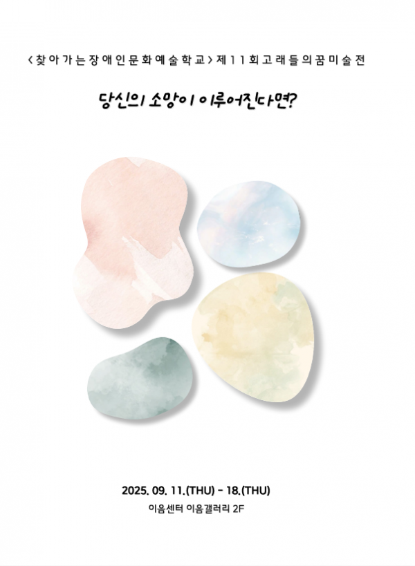 사단법인 국제장애인문화교류협회중앙회(이하 국장협, 이사장 최공열)은 9월 11일부터 18일까지 서울 혜화역 이음센터 이음갤러리(2F)에서 <찾아가는 장애인문화예술학교> 제11회 고래들의 꿈, “당신의 소망이 이루어진다면?” 미술전을 개최했다.