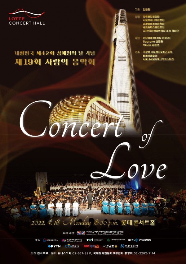 사단법인 국제장애인문화교류협회중앙회가 주최하는 ‘대한민국 제42회 장애인의 날 기념 제19회 사랑의음악회’가 오는 18일 오후 8시 서울 롯데콘서트홀에서 열린다.