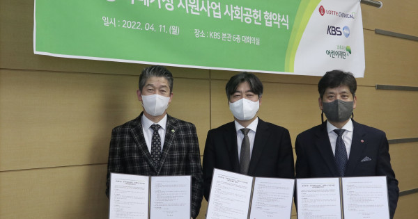 이날 롯데케미칼은 초록우산어린이재단과 한국방송공사(KBS)를 통해 ‘KBS 동행’에 소개되는 취약계층아동에게 3년간 총 3억원의 후원금 지원을 약속했다.