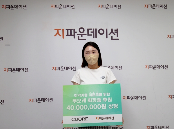 국제개발협력NGO 지파운데이션(대표 박충관)은 쿠오레(대표 편다솜)가 취약계층 미혼모를 위해 4천만 원 상당의 화장품을 기부했다고 13일 밝혔다.