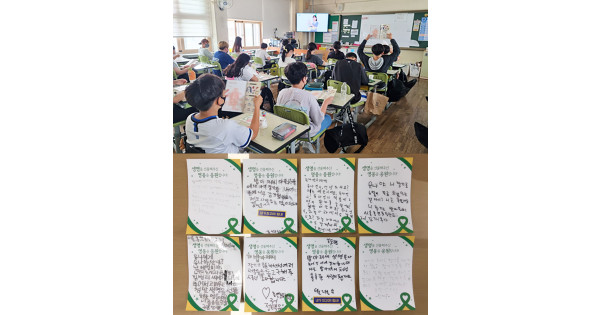 교육에 참여한 5학년 박재인 군은 장기기증인에게 “너무 존경스럽고 대단하세요. 어려운 결정이지만 덕분에 기증을 받은 분은 생명의 은인이라고 생각할 거예요. 하늘의 아름다운 별이 되어 꼭 행복하게 사세요.”라는 감동적인 편지를 보내기도 했다.