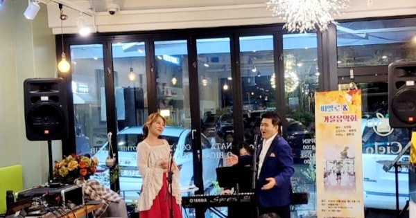단풍이 고운 빛으로 물들어 가는 가을 밤, 지난 24일 저녁 7시, 용인 보정동 카페거리의 씨엘로(Cielo, 대표 박시은)에서 테너 박주옥과 소프라노 윤현정과 피아니스트 윤현정(동명이인)은 용인시민 초청‘보정카페거리 가을음악회’를 마련해 깊은 감동과 울림을 선사하였다.