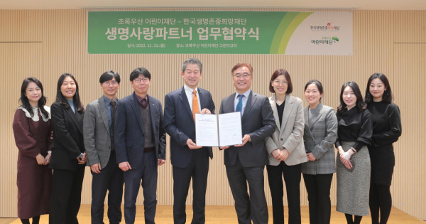 초록우산어린이재단(회장 황영기)은 21일 한국생명존중희망재단(이사장 황태연)과 자살예방 및 생명존중문화 확산을 위한 업무협약을 체결했다.