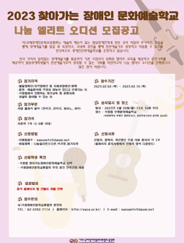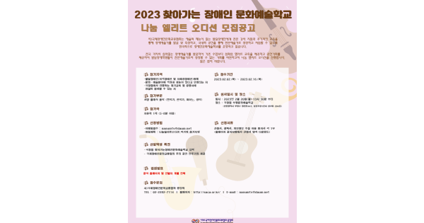 찾아가는 장애인문화예술학교 나눔 엘리트 오디션 공고