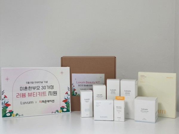 러븀(Luvum)은 올해 2월부터 지파운데이션과 함께 미혼한부모 30가정을 대상으로 문화생활 지원사업을 진행하고 있으며, 5월 어버이날을 맞아 해당 가정에 러븀의 스킨케어 제품 8종을 키트로 제작해 선물하였다.