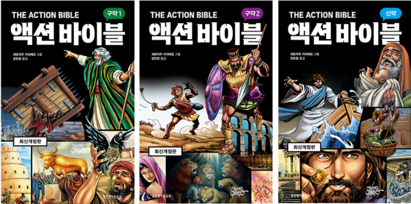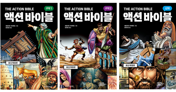 성경에 나오는 인물들의 활약을 생동감 넘치게 보여 주는 만화성경 『액션 바이블』은 출간 이후 10년 넘게 많은 독자에게 사랑받아 온 스테디셀러다. 이 책이 기존 내용보다 확장되고, 새로운 이야기와 그림이 더해져 성경의 세계를 더 깊이 있고 다채롭게 탐험하게 한다. 구약 2권, 신약 1권으로 구성되어 신구약 성경 전체를 흥미롭게 요약하여 소개하며, 어린이부터 청소년, 청장년에 이르기까지 누구나 즐길 수 있다. 230여 개의 이야기가 시간순으로 전개되어 성경의 역사적 흐름을 쉽게 파악할 수 있게 하고, 핵심을 찌르는 내용과 극적인 이미지가 조화를 이루어 성경의 진리를 분명하고 설득력 있게 전해 준다.