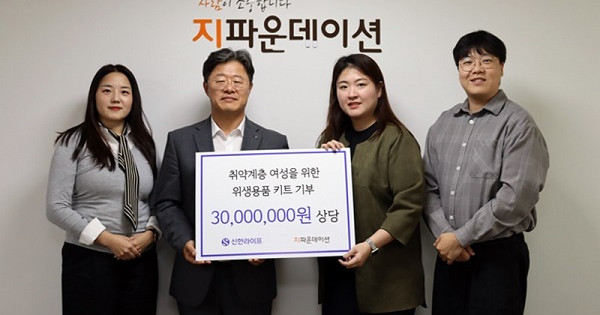 국제개발협력NGO 지파운데이션(대표 박충관)은 신한라이프(대표 이영종)가 취약계층 여성을 위한 3,000만 원 상당의 위생용품 키트를 기부했다고 28일 밝혔다.