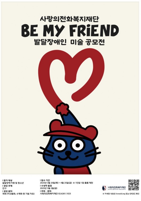 사랑의전화복지재단(이사장 심정은)이 발달장애 아동·청소년의 예술적 표현과 사회적 소통을 지원하기 위한 'Be My Friend' 발달장애인 미술 공모전을 개최한다고 24일 밝혔다.