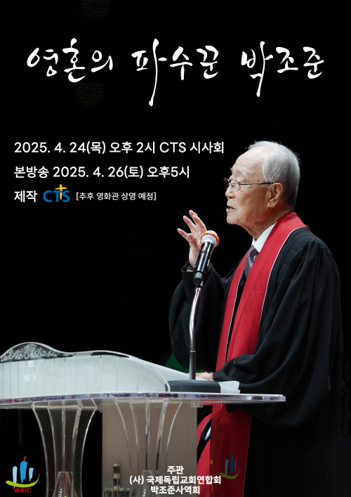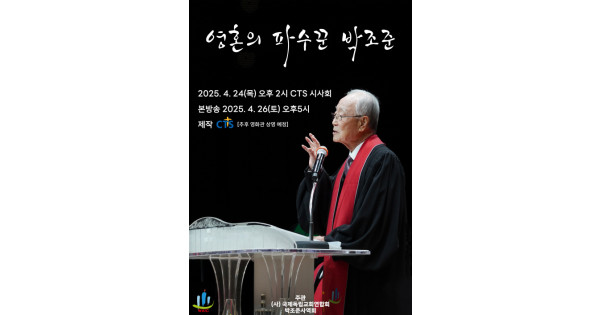 <영혼의 파수꾼, 박조준> 다큐멘터리는 오는 4월 24일(목) 오후 2시, CTS 아트홀에서 시사회를 개최하며, 이후 4월 26일(토) 오후 5시, CTS기독교TV 부활절 특집 다큐멘터리로 방영될 예정이다. 교계 인사들과 후배 목회자들이 함께 자리하는 이번 시사회는 단순한 상영회를 넘어 박조준 목사의 신앙과 사역을 되새기고 계승하는 기념비적 자리가 될 것으로 기대를 모은다.