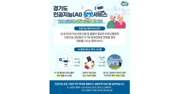 경기도와 경기도사회서비스원은 ‘경기도 인공지능(AI) 노인말벗서비스’를 약 두 달간 시행한 결과 644명을 대상으로 5천900건의 상담 서비스를 제공했다고 30일 밝혔다.