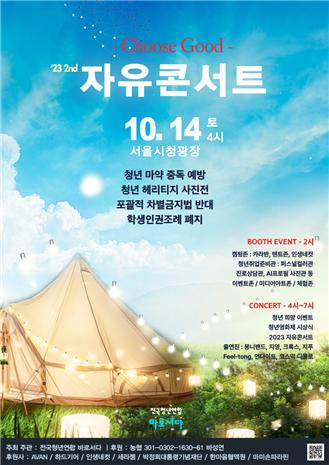 올해 자유콘서트는 오후 2시부터 캠핑존, 청년취업준비관 등 부스 이벤트가 열린다. 오후 4시부터 본격적인 콘서트가 시작되며 식전행사로는 제1회 청년영화제 시상식이 열린다. 영화제의 주제 역시 ‘Choose Good’이다.