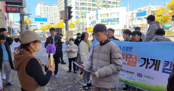 수성중학교 선플누리단, 청소년들에게 친절한 가게 선정 시상