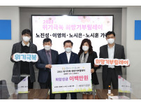노시은 가족(노진성父, 이영의母, 노시은女, 노시훈子)은 15일 희망성금 200만원을 광명시사회복지협의회(회장 이상재)-광명희망나기운동본부에 전달하였다. ?노시은 후원자는 광명시사회복지협의회 이사이자 광명시립푸른어린이집 이영의 원장의 자녀로 취업을 하여 첫 월급에서 1...