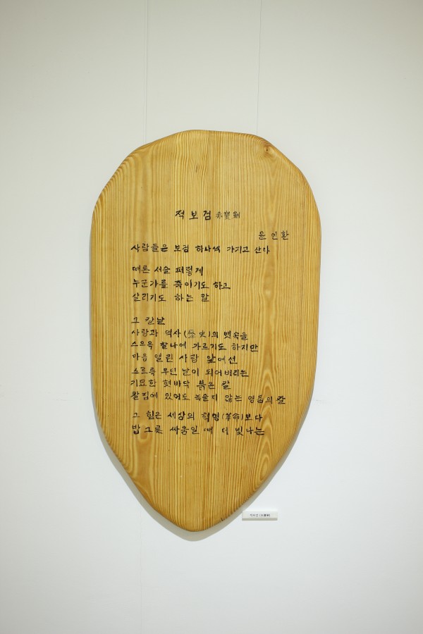 이번 전시에 문인 대표로 참여한 윤인환 시인(한국문협 화성시지부장)은 ‘적보검’이란 시를 통해 “혀(말)로 누군가를 죽이지도 하고 살리기도 하는 칼”이라고 표현하며 “거친 언어가 사회를 더욱 거칠게 만들고 있고, 부정적인 사회를 만들고 있다”면서 “예술가들이 함께 예술로 표현한 현대사회를 보고 현대 사회 문제를 고민하고 자성할 수 있는 기회가 되길 바란다”고 말했다.