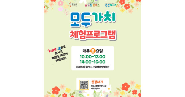 호기심연구소협동조합(이사장 안유선)는 화성시 사회적경제홍보관 ‘모두가치’에서 13일부터 7월 29일까지 체험 프로그램을 운영한다고 밝혔다.