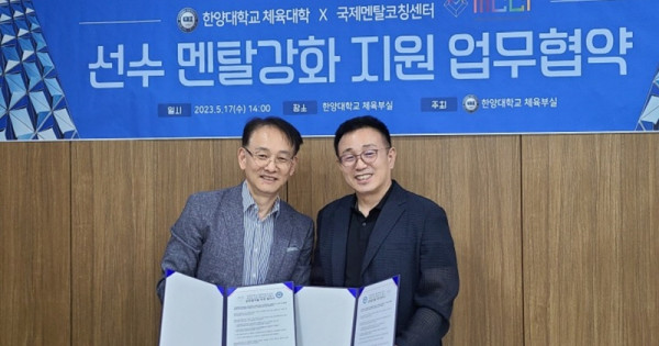 국제멘탈코칭센터(대표 박철수)는 17일 한양대학교 예술·체육대와 함께 '선수 멘탈코칭 지원'을 위한 협력체계인 MOU를 체결했다고 밝혔다.