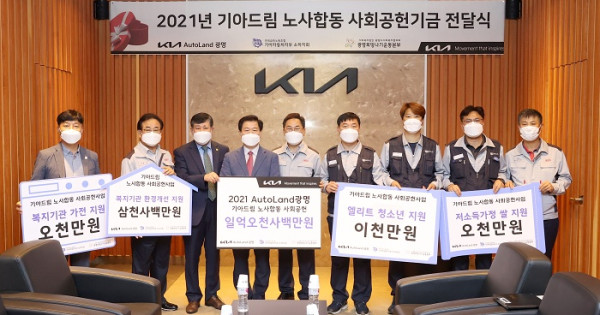 기아자동차 노동조합 소하지회 서성환 수석부지회장은 “함께 뜻 깊은 나눔을 전할 수 있어 기쁘고 앞으로도 노사가 함께 더 많은 사회공헌을 할 수 있도록 최선을 다하겠다.”고 전했다.