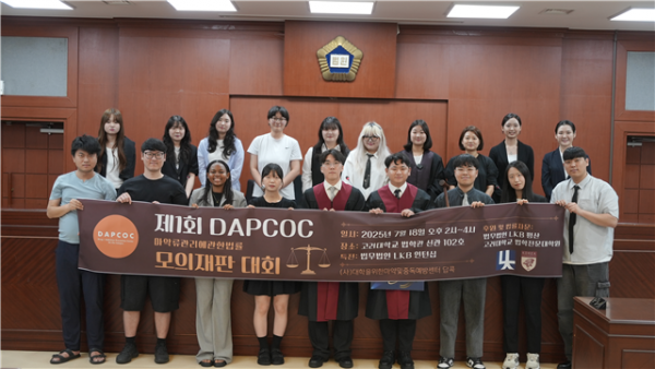 (사)대학을위한마약중독예방재활센터 (이하 답콕. DAPCOC Drug Addiction Prevention-Rehabilitation Center On the Campus. 이사장 두상달)에서 지난 18일 고려대학교 법학 신관 모의법정실에서 ‘답콕 제1회 마약류관리에관한법률 모의재판’을 성공적으로 개최했다.