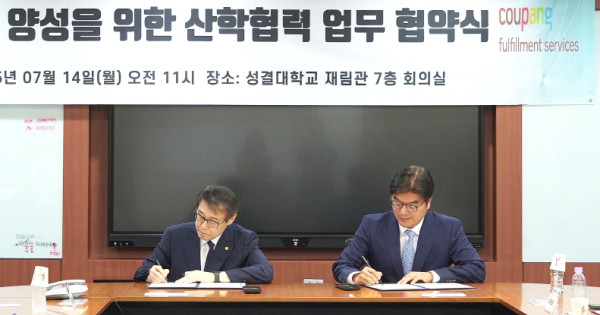 성결대학교(www.sungkyul.ac.kr, 총장: 정희석)와 쿠팡의 물류계열사인 쿠팡풀필먼트서비스(Coupang Fulfillment Services, 이하 CFS)가 7월 14일(월), 물류 분야 전문 인력 양성을 위한 산학협력 업무협약(MOU)을 체결했다. 협약식은 성결대학교 재림관 7층 회의실에서 진행됐으며, 정희석 총장과 정종철 CFS 대표이사를 비롯한 양 기관 주요 관계자들이 참석해 협력의 의미를 더했다.