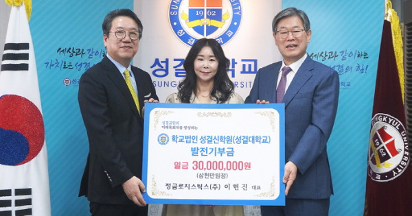 성결대, 정금로지스틱스(주)로부터 3천 만원 발전기금 기부 받아