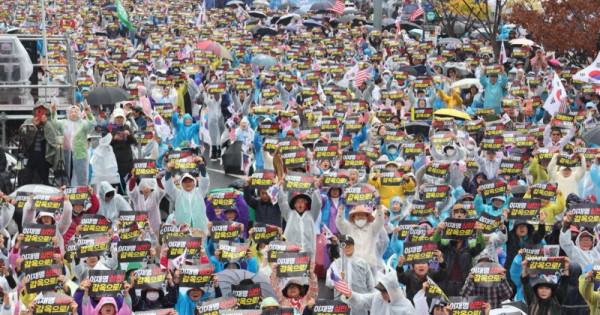 이날 대한민국바로세우기국민운동본부(대국본) 주최로 진행된 국민대회는 집회 측 추산 30여만명이 모여 “이재명 심판! 감옥으로!”라고 적힌 팻말을 치켜들고, 이재명 대표의 구속을 촉구했다.