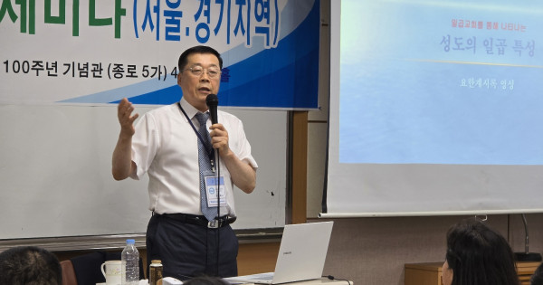 김임복 목사(순복음무등교회)의 ‘말씀영성과 치유 목회자세미나’가 19일 한국교회100주년기념관에서 ‘일곱교회를 통해 나타나는 성도의 일곱 특성’이란 주제아래 개최됐다.